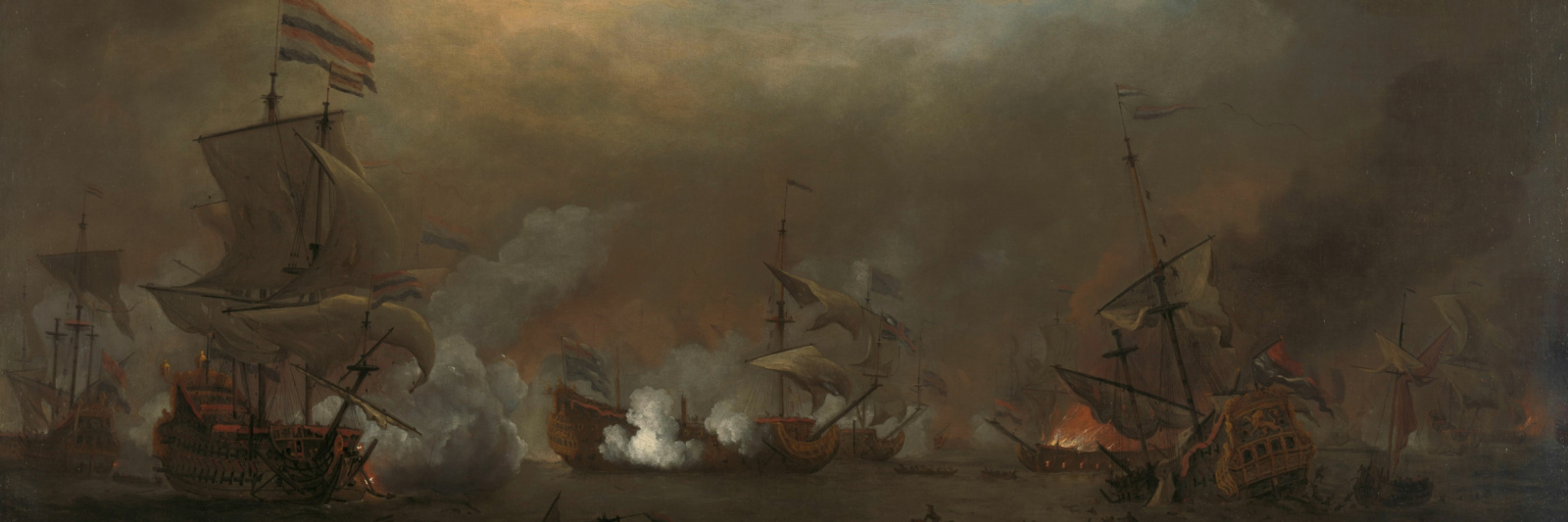 Willem van de Velde (1633-1707) started his life as a sailor, later becoming an artist for the Dutch navy. He made plentiful portraits of vessels, royal yachts and battle ships. Subsequently he was commissioned by the British King to portray numerous naval battles.